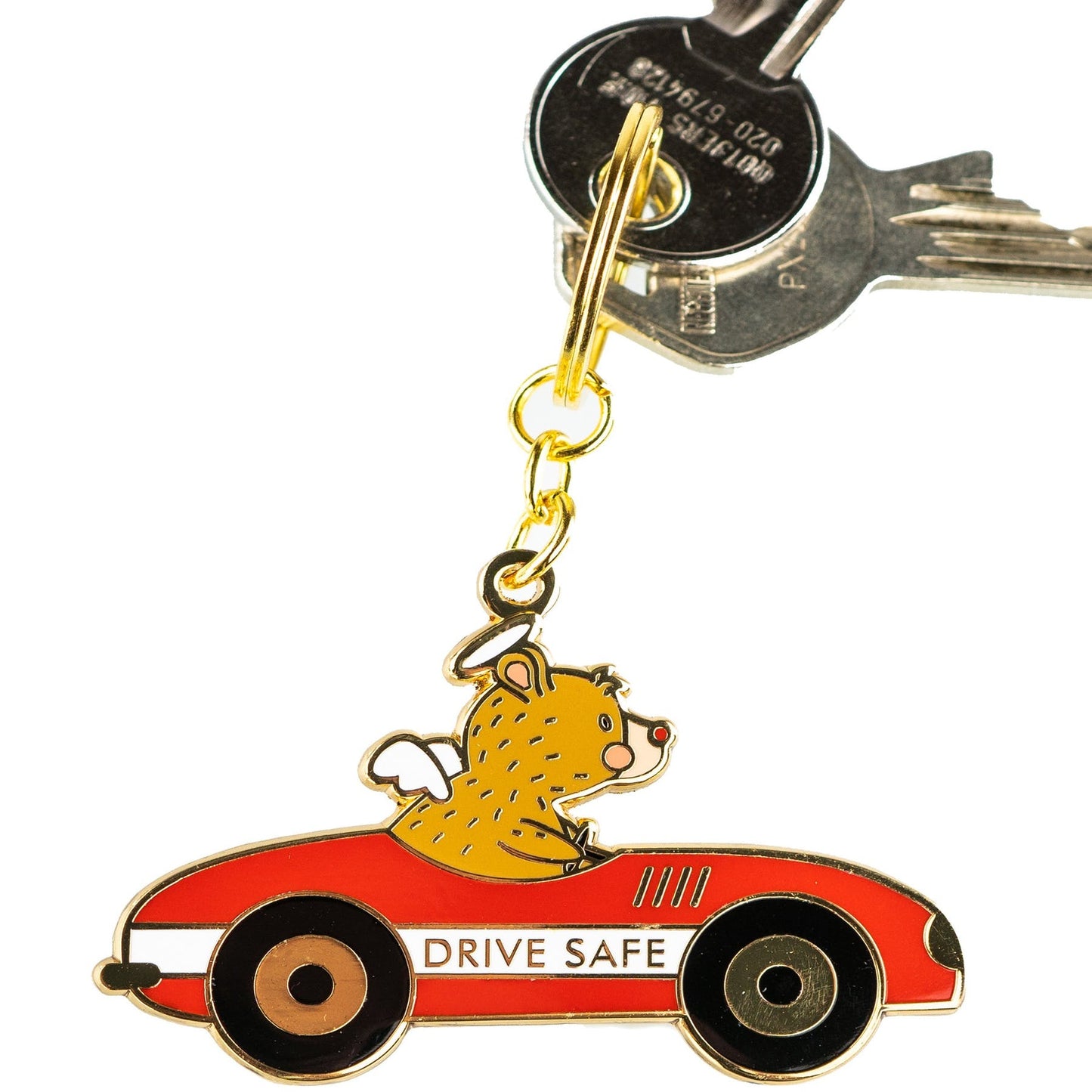 Conduisez prudemment, j'ai besoin de vous ici avec moi. Le porte-clés de voiture Drive Safe est aussi un porte-bonheur et un ange gardien à la fois. Que ce soit pour un conducteur novice, un partenaire ou un bon ami, cette remorque est une idée cadeau spéciale avec un message d'amour. Le porte-clés a été conçu pour les hommes et les femmes et montre un ours dans la voiture avec l'inscription « Drive Safe ».