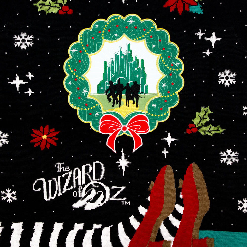 Tornado vous a balayé et vous a amené au pays d'Oz juste avant Noël ? Eh bien, tout ce dont vous avez besoin est une paire de pantoufles rubis magiques pour que vous puissiez cliquer trois fois sur les talons. Ne vous inquiétez pas, vous n'aurez pas à chercher bien loin pour le trouver car nous en avons un rien que pour vous sur ce pull de Noël 100% tricot. Sûr de faire tourner la tête des habitants d'Emerald City, ce vêtement d'hiver est parfait pour tout fan du film emblématique, Wizard of Oz.