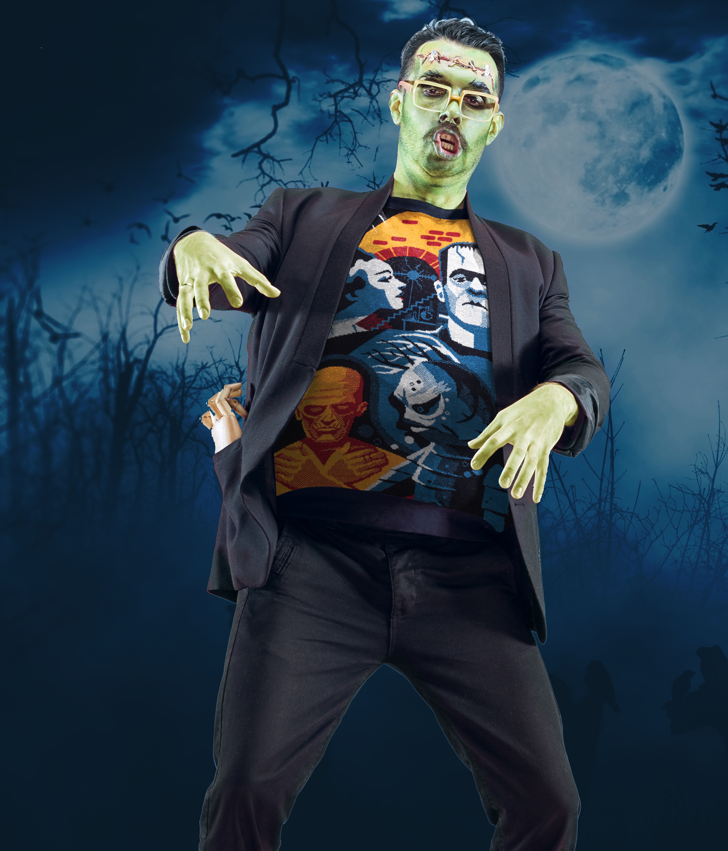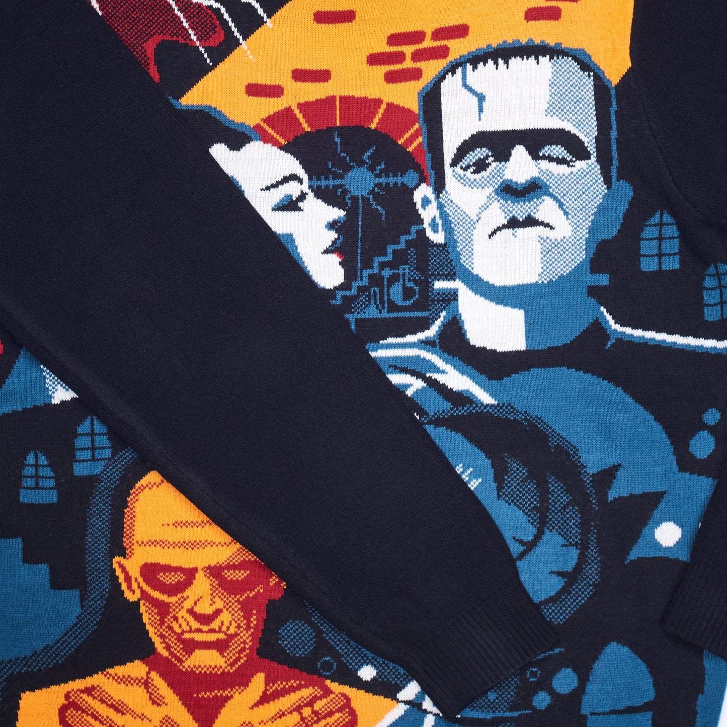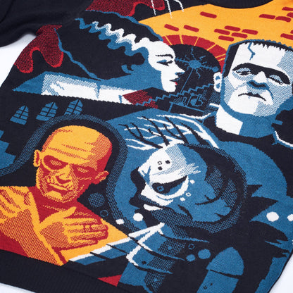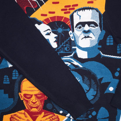 Vous cherchez à ajouter ce facteur de peur supplémentaire à votre Halloween ? N'en dites pas plus, ce chandail cool fait le travail ! Restez en bonne compagnie cet Halloween car ce chandail effrayant de haute qualité présente le groupe de monstres le plus emblématique : la créature de Frankenstein, une momie, une créature du lagon noir et la femme de Frankenstein. Ce pull ne manquera pas de faire parler de vous lors de toute fête d'Halloween à laquelle vous assisterez !