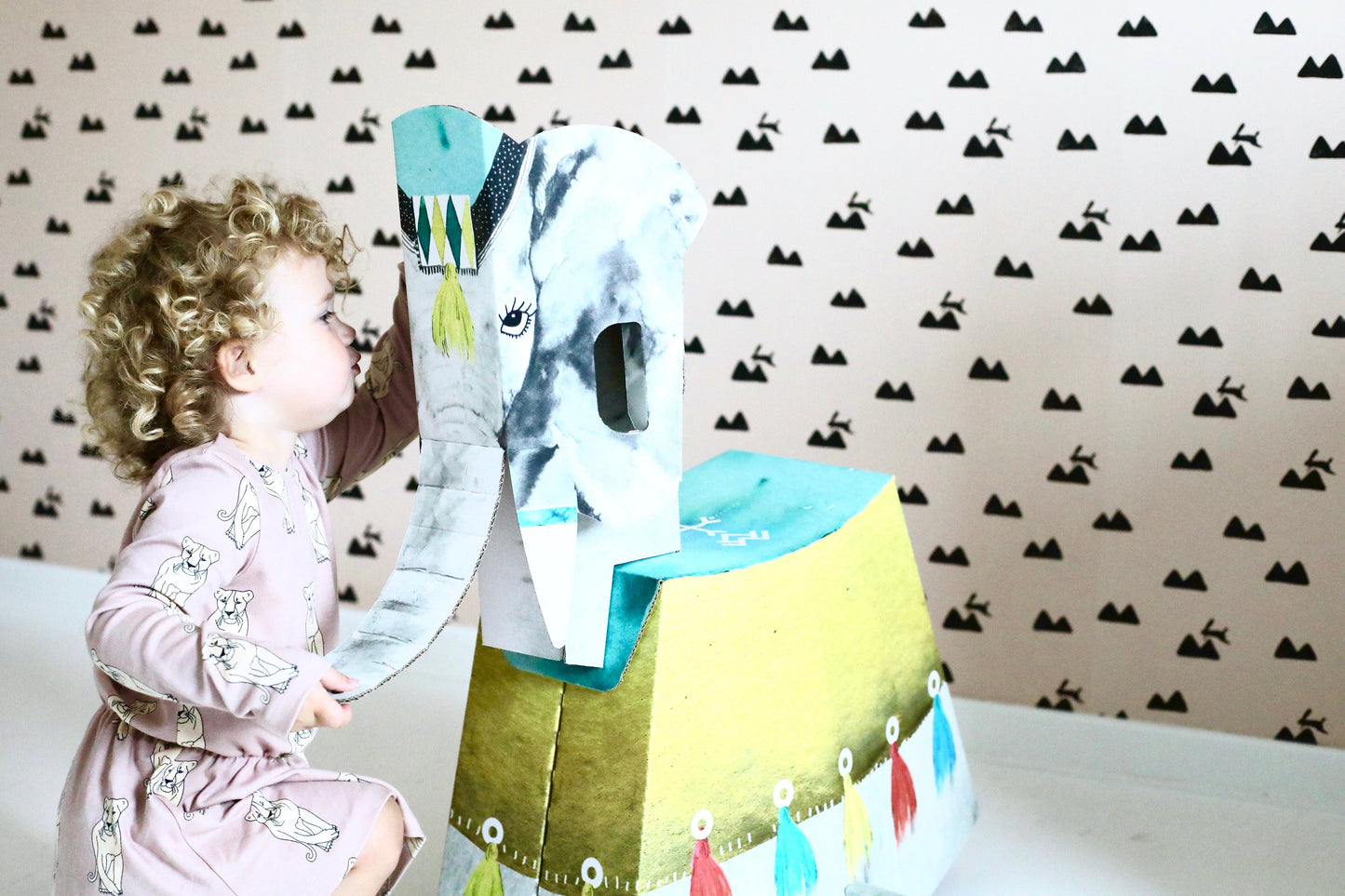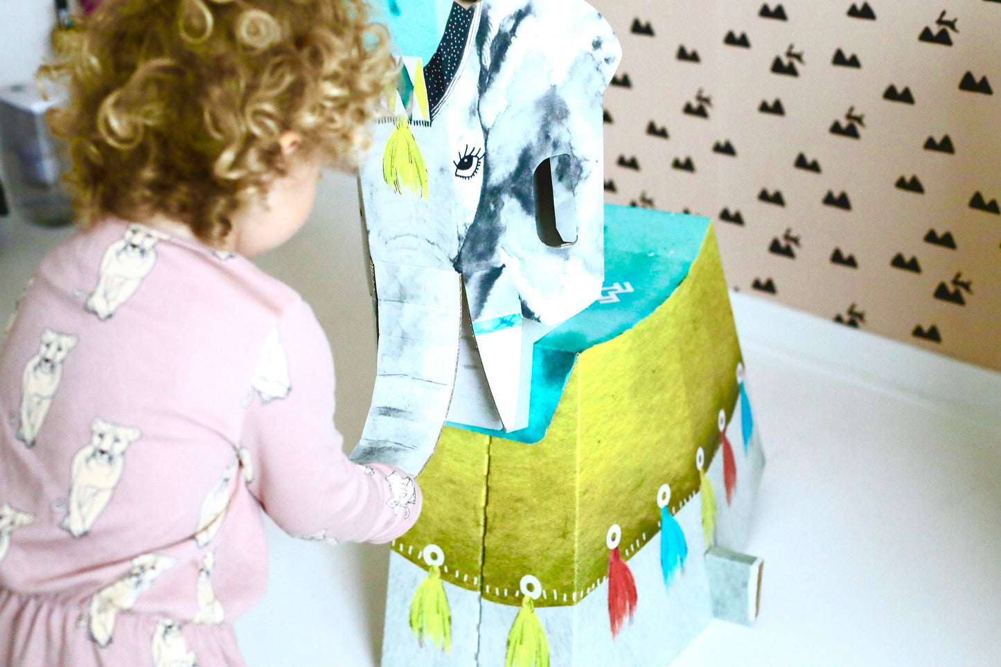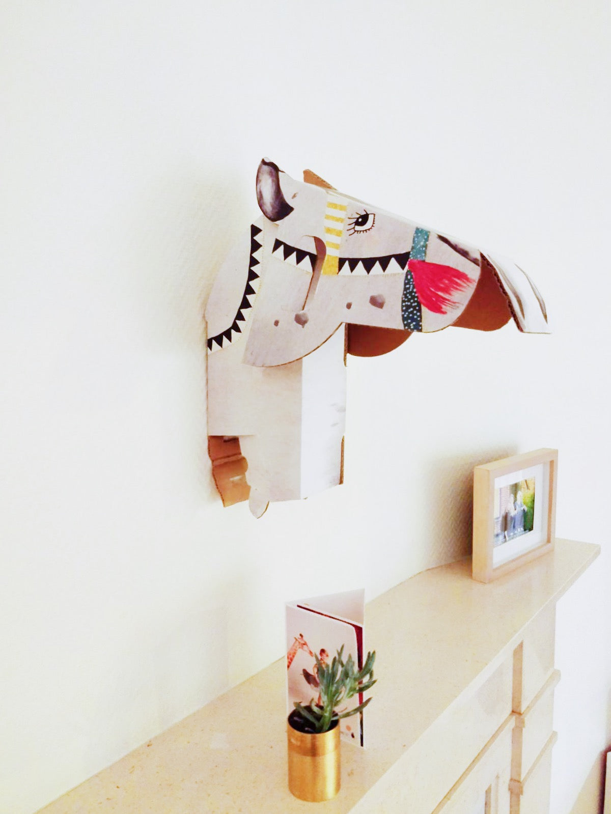 Le meuble en carton à monter, qui bascule. La tête peut également être séparé puis être accroché au mur. Vous avez du coup un tabouret.