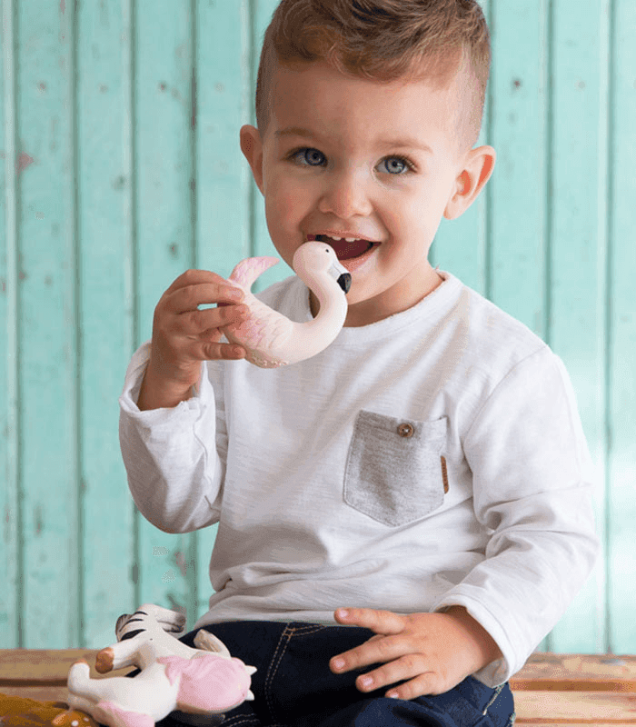 Sky le flamant rose est un anneau de dentition en forme d'animal qui est parfait pour être utilisé comme jouet de dentition, jouet pour le bain et jeu sensoriel. Il est peint avec des pigments naturels, 100% sans danger pour les enfants ! Prêt à être porté aux poignets des bébés et des enfants lors de chacune de leurs aventures !