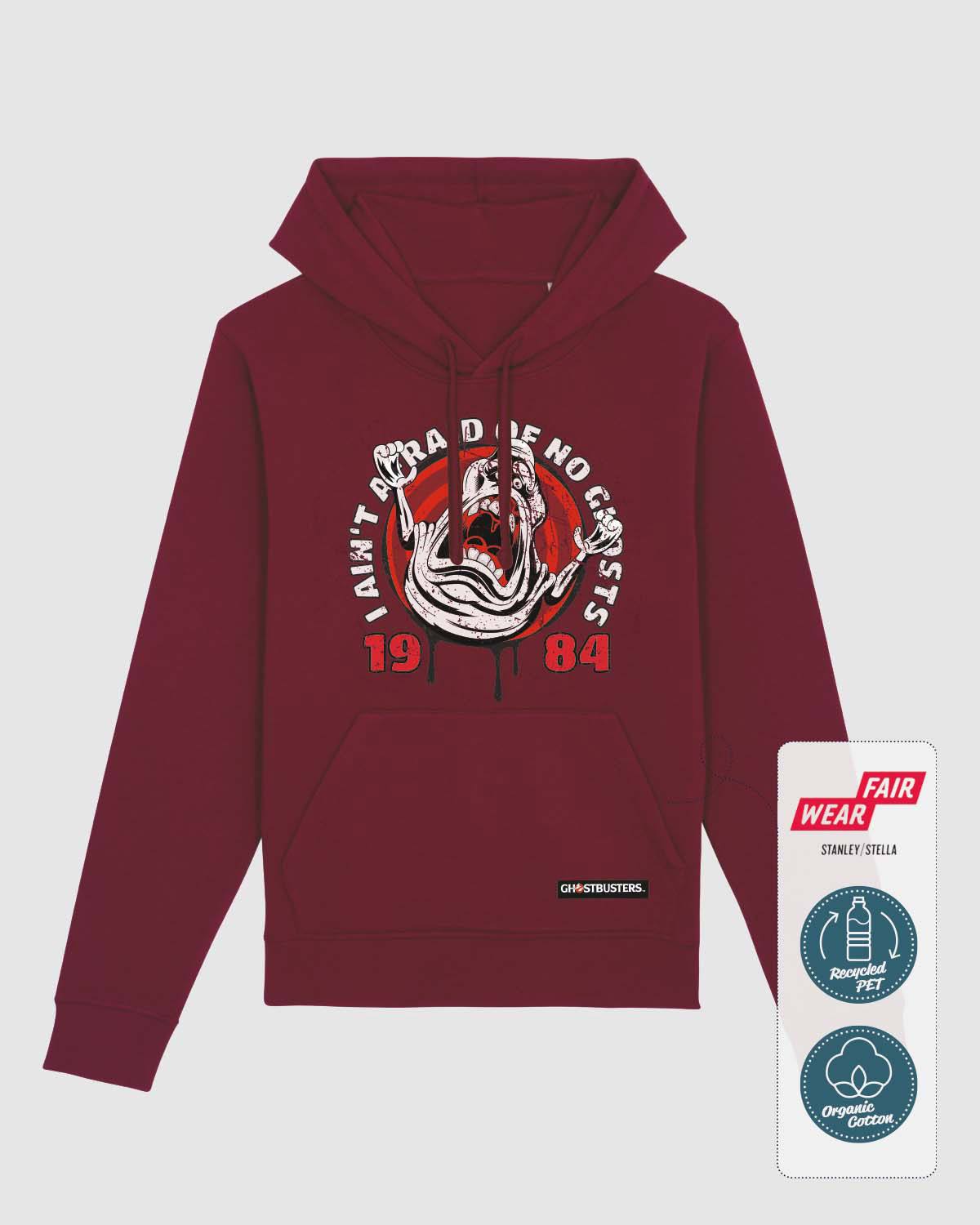 Sweater à capuche premium durable de la franchise classique culte Ghostbusters. Il montre le fantôme préféré des fans Slimer et la phrase "Je n'ai pas peur des fantômes" qui vient directement de la chanson thème de la franchise. Ce sweat à capuche a été produit en mettant l'accent sur la durabilité et la durabilité. La matière première se compose de 85 % de coton (coton biologique certifié GOTS), qui nécessite jusqu'à 91 % d'eau en moins pour la culture et de 15 % de polyester recyclé, qui assurent un confort de port élevé. Avec un grammage de 280 g/m² et des surpiqûres doubles au niveau de l'emmanchure, de l'ourlet des manches et de l'ourlet, le sweat à capuche offre un ajustement parfait. Des cordons ronds de même couleur avec un bout de cordon et des œillets métalliques empêchent l'effilochage et la formation de déchirures dans le tissu.