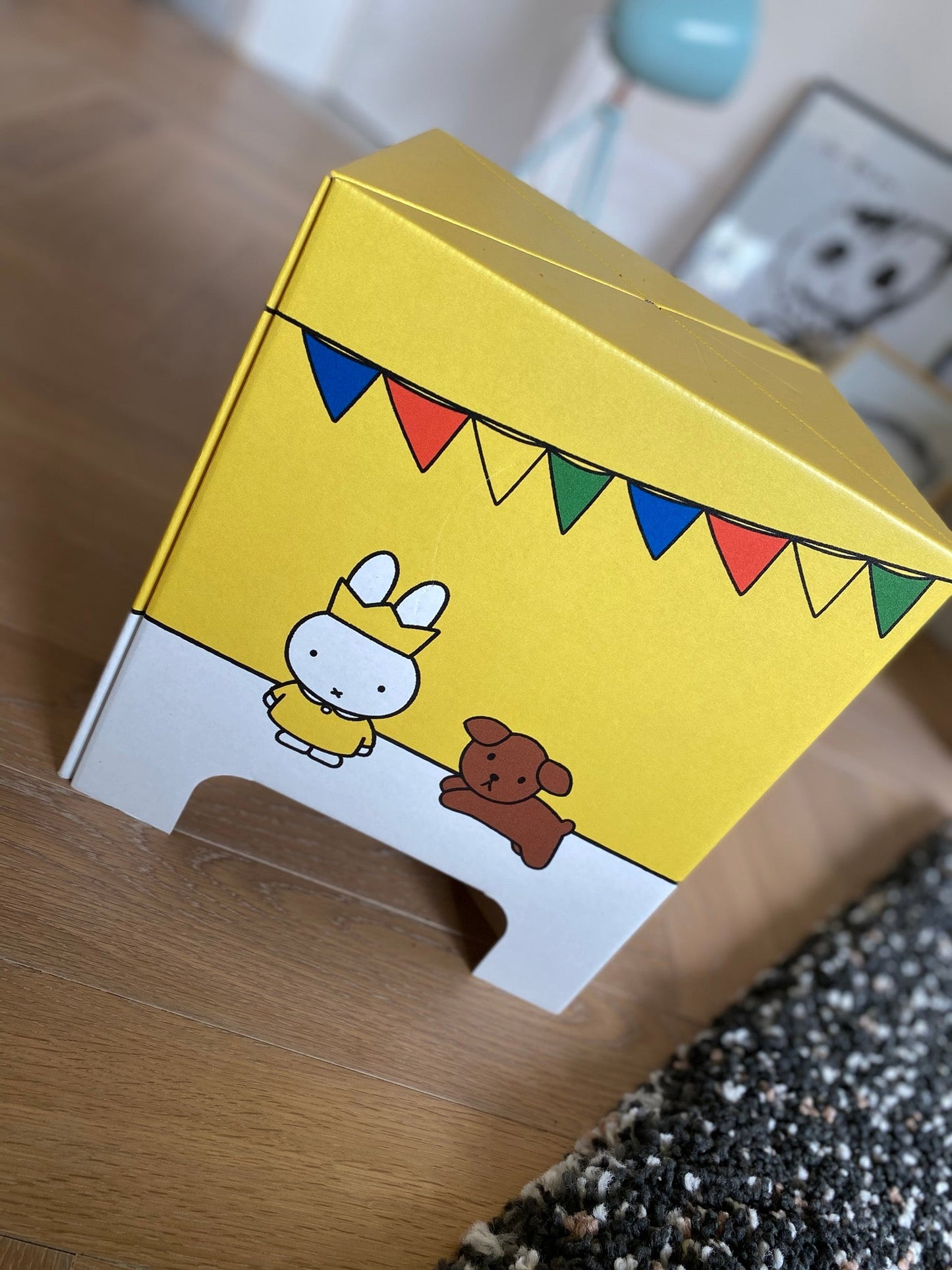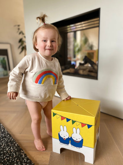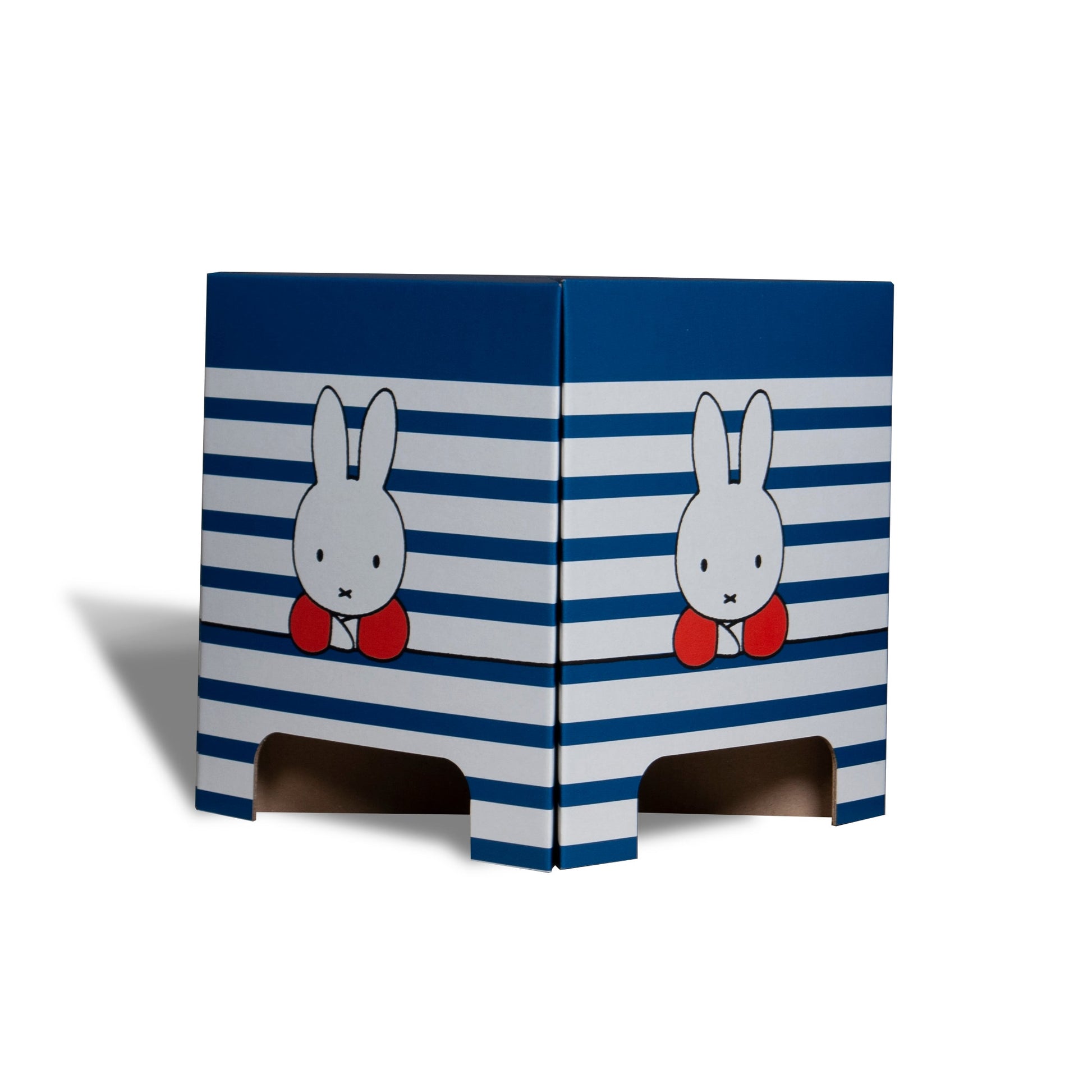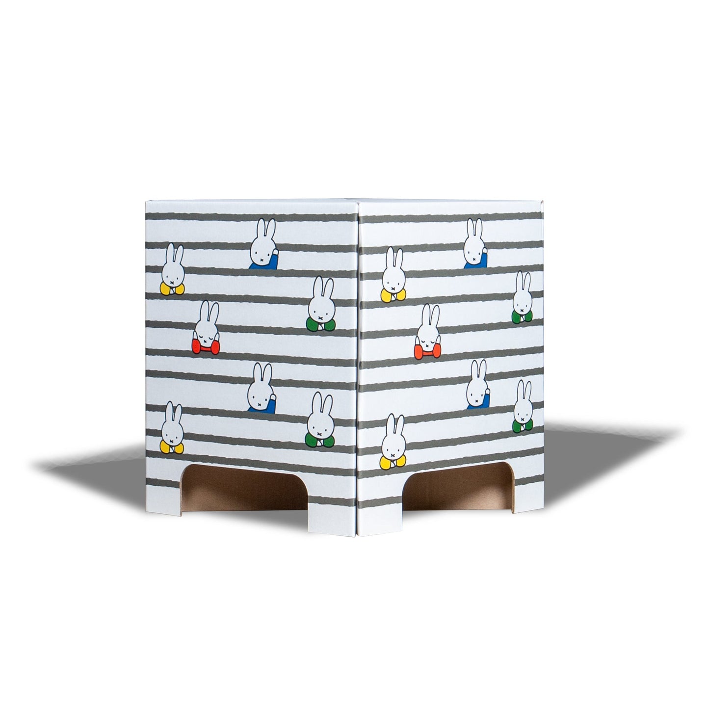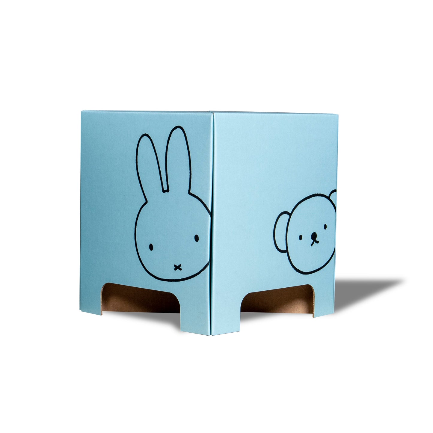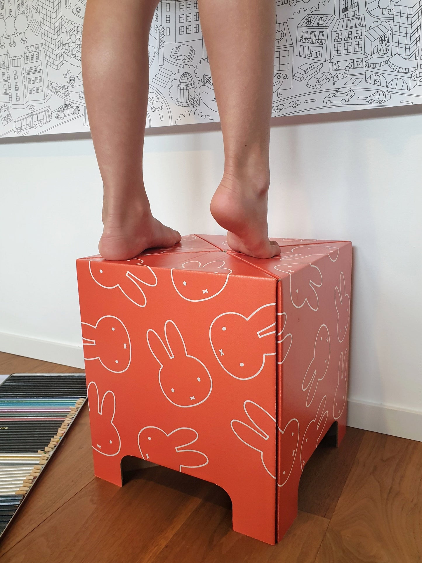 Un tabouret en carton à construire avec Miffy. Parfait pour décorer la chambre d’enfants, et très pratique. Made in Belgique.