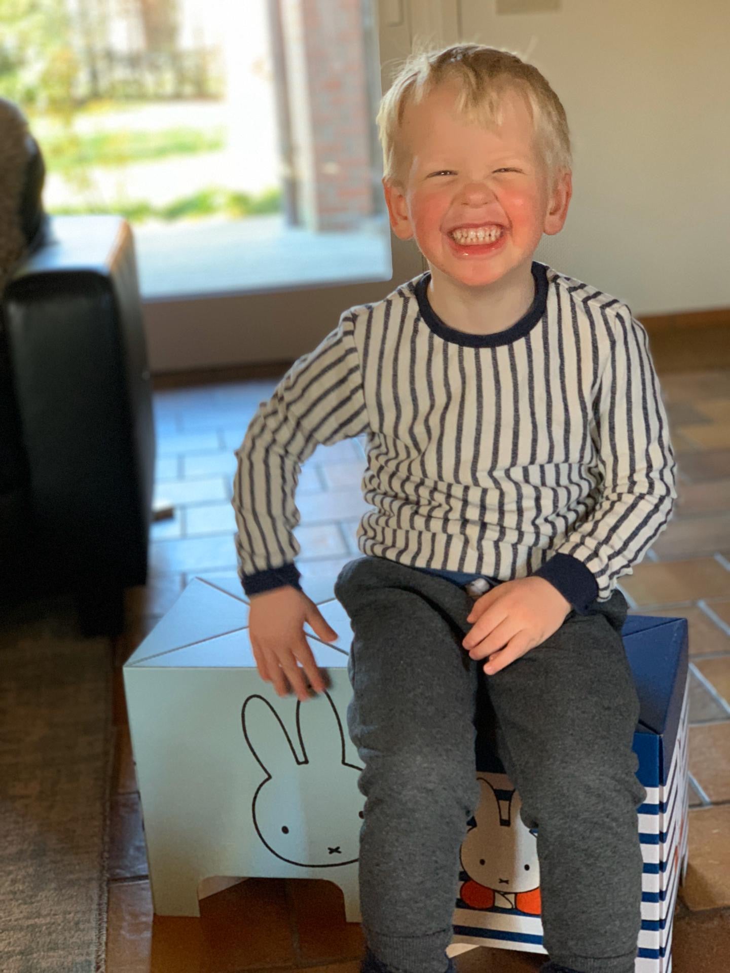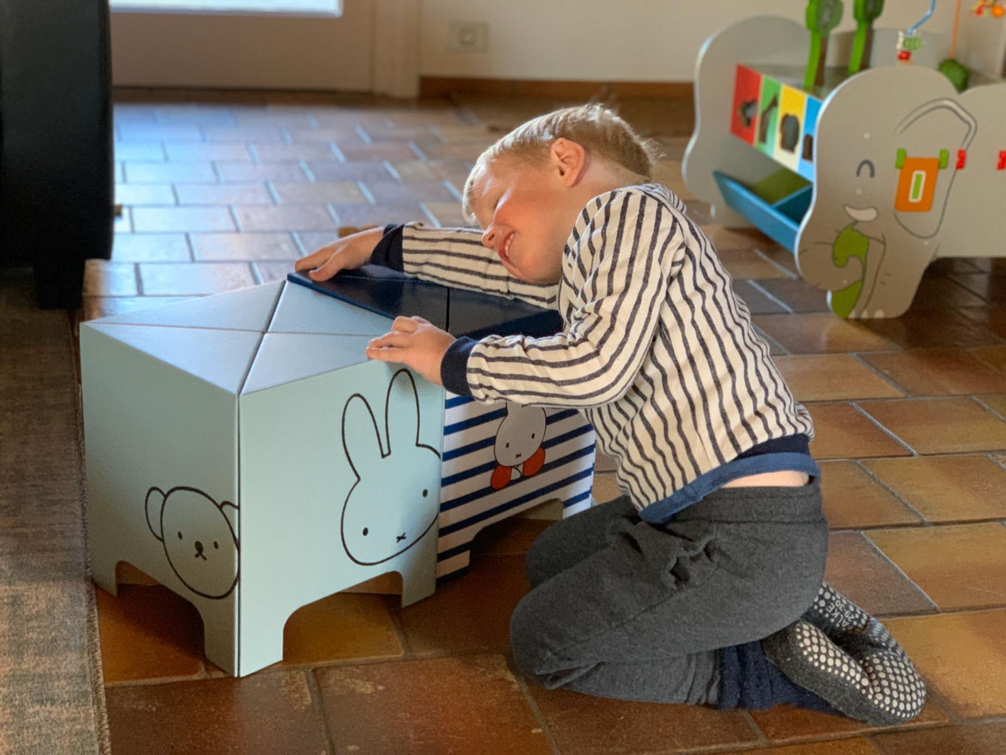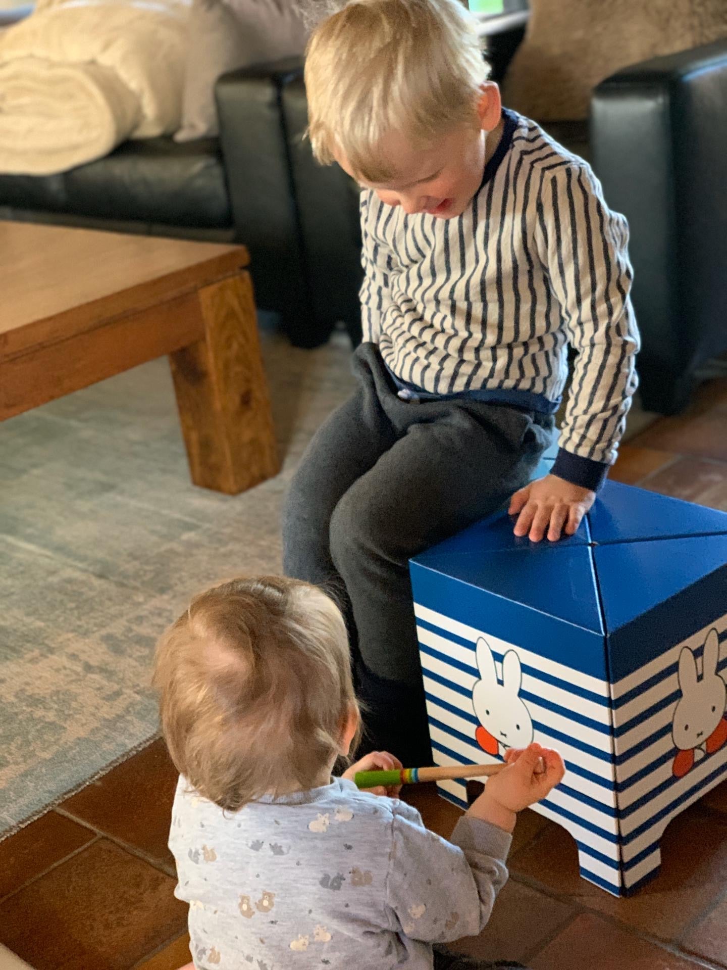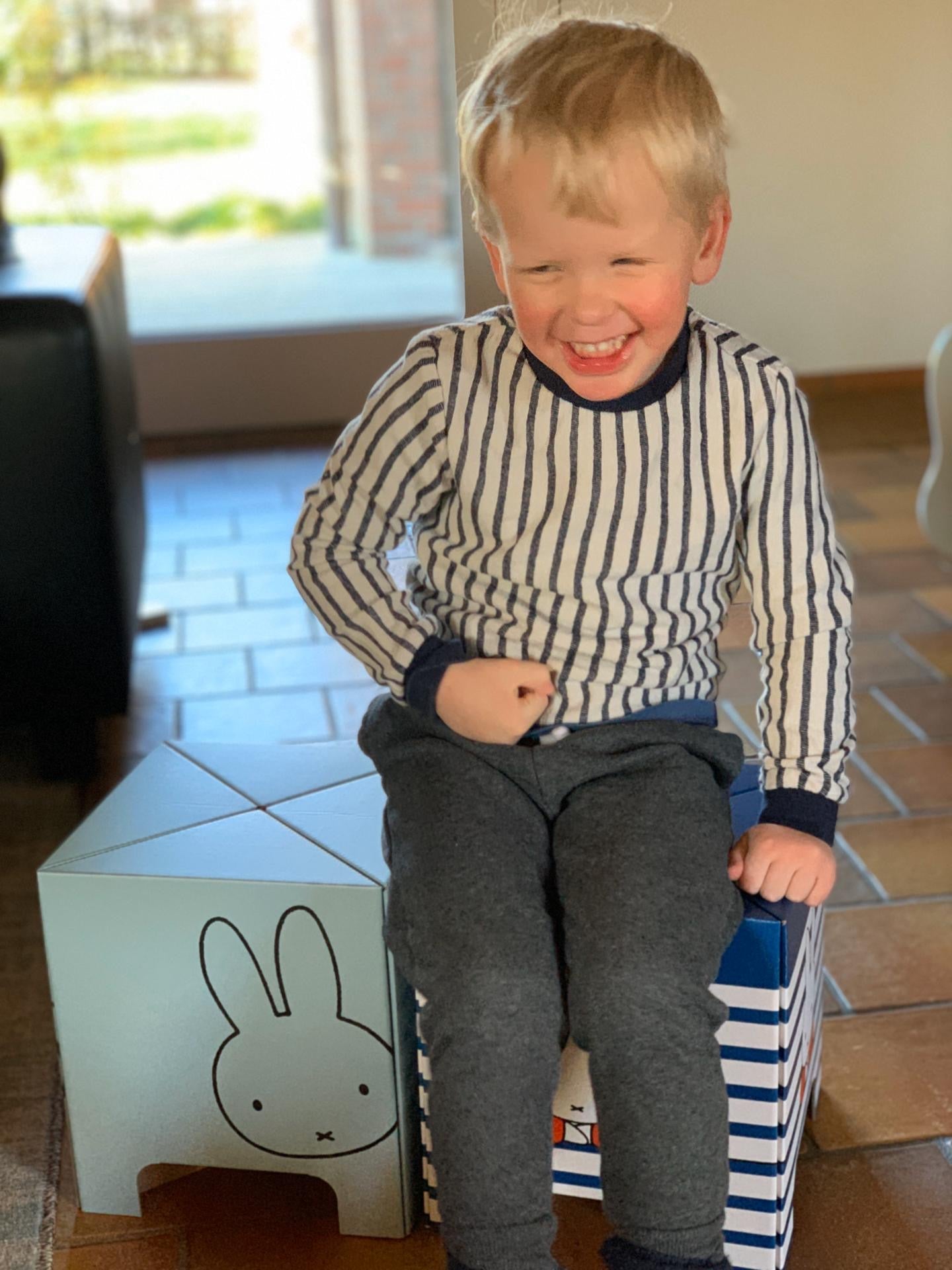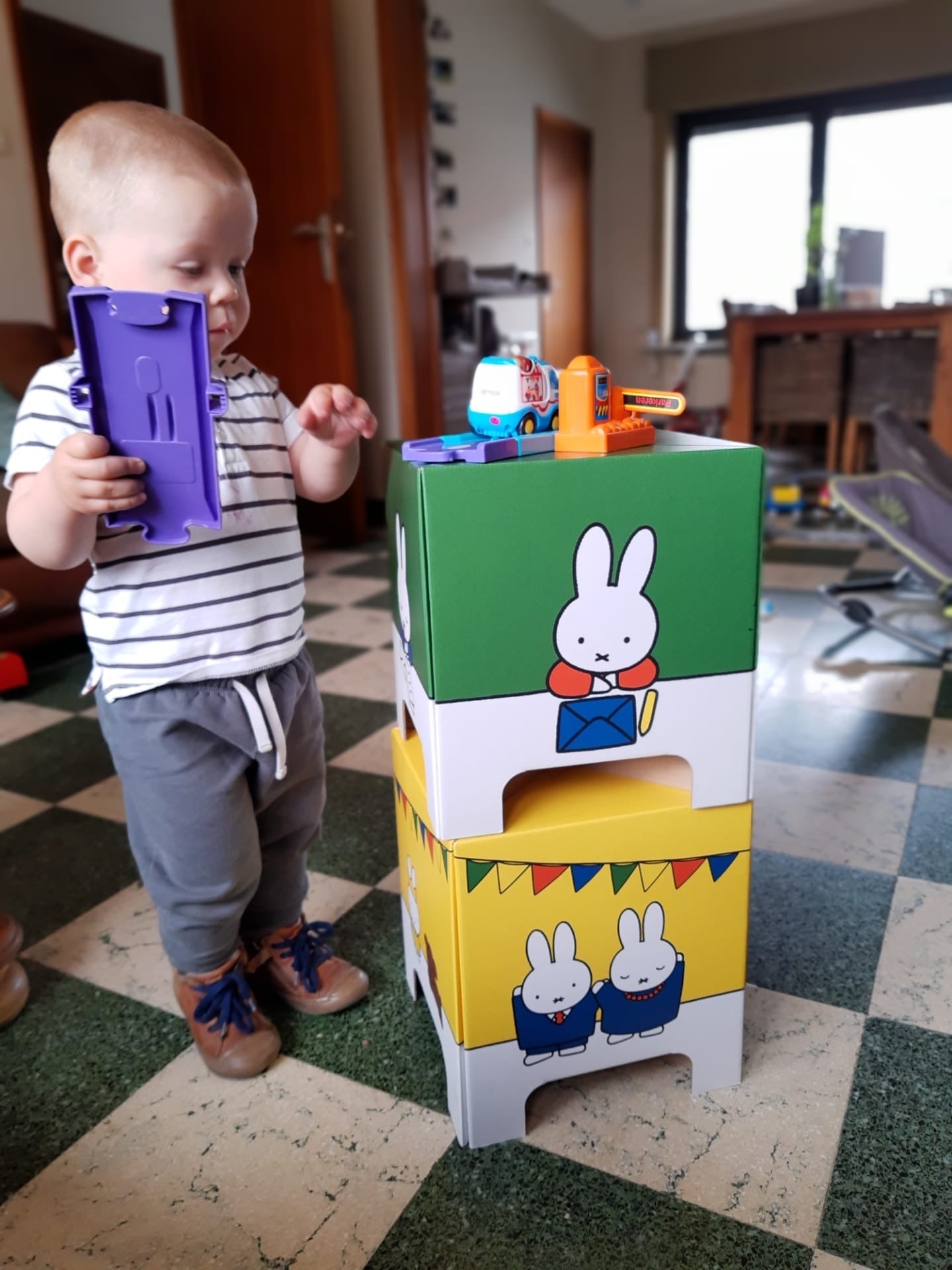 Un tabouret en carton à construire avec Miffy. Parfait pour décorer la chambre d’enfants, et très pratique. Made in Belgique.
