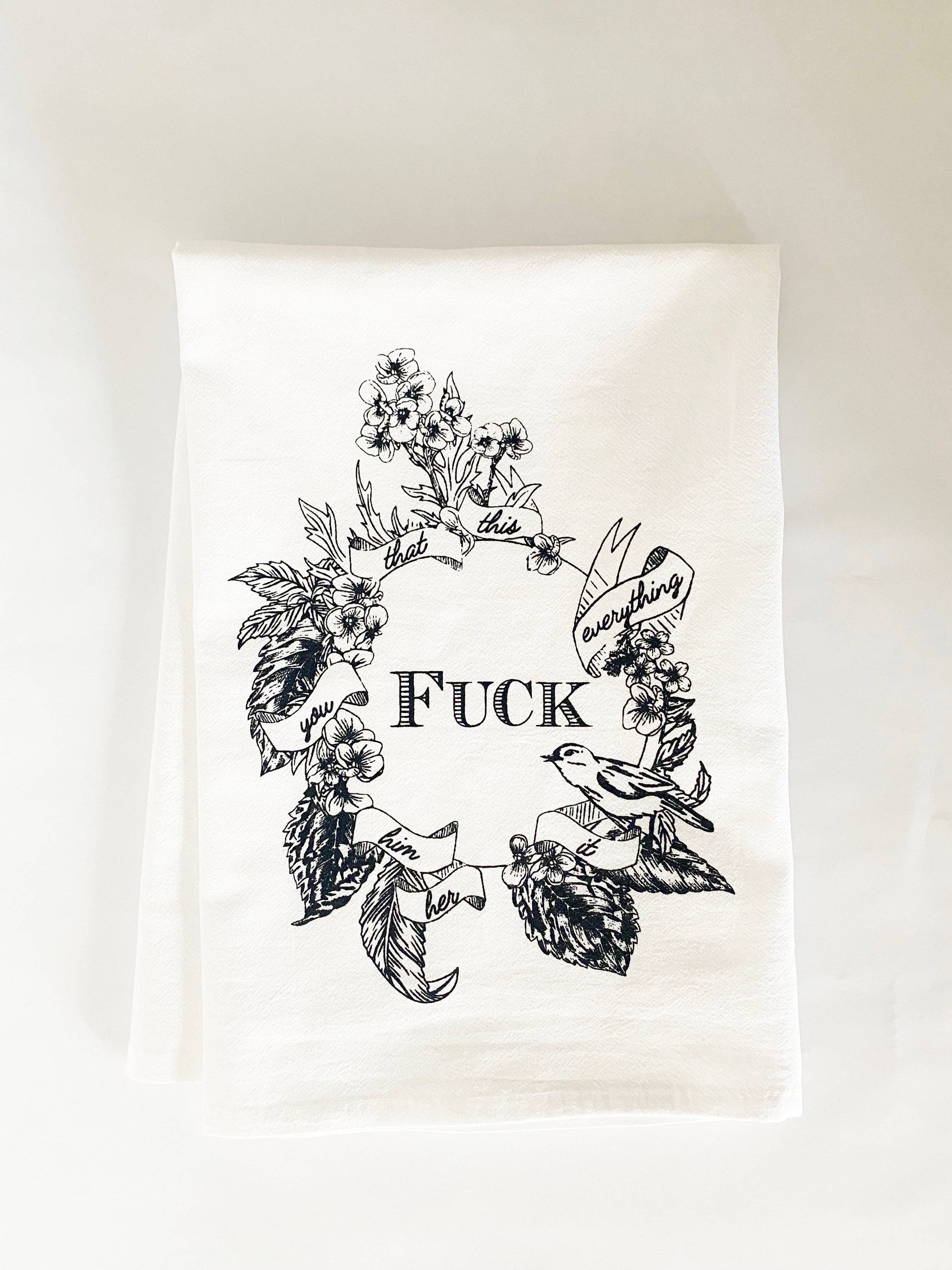 Faites le ménage avec style avec cette serviette de cuisine en coton Fuck Everything ! Doté d'un design drôle, rétro et vintage, cet accessoire de cuisine sarcastique vous permettra d'accomplir facilement vos tâches avec un sens de l'humour effronté. Quelle meilleure façon de rendre chaque désordre un peu plus amusant ?