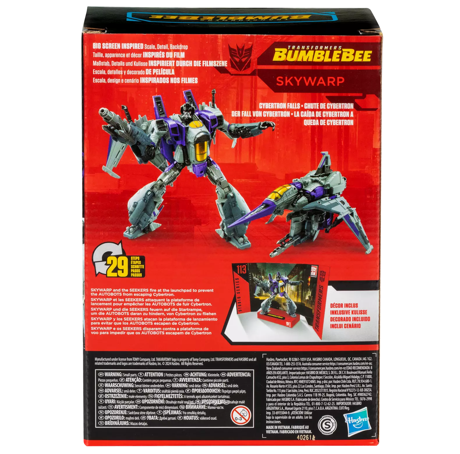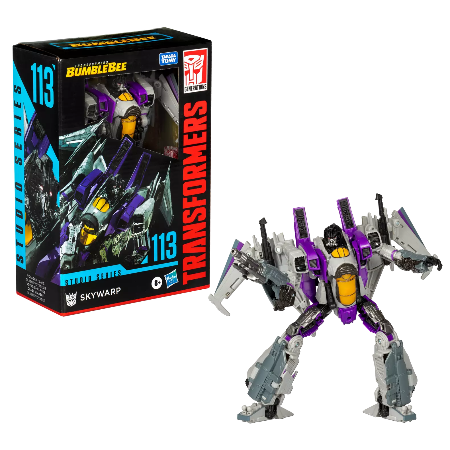 - La figurine Transformers Generations Studio Series 113 Skywarp est hautement articulée pour un maximum de poses avec une déco et des détails inspirés du film