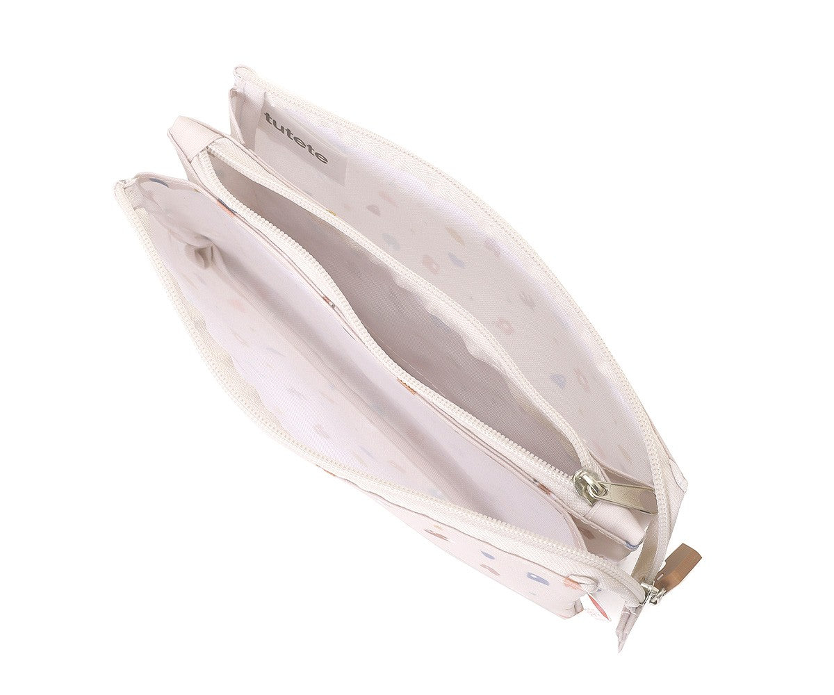 Votre enfant adorera ranger ses fournitures scolaires, crayons, feutres, pastels, etc. dans cette trousse pour enfants à 3 compartiments de Tutete. Avec un imprimé urbain aux tons doux et petits motifs géométriques inspirés de la nature, elle sera l'accessoire idéal pour les familles à la recherche de style moderne, neutre et fonctionnel.