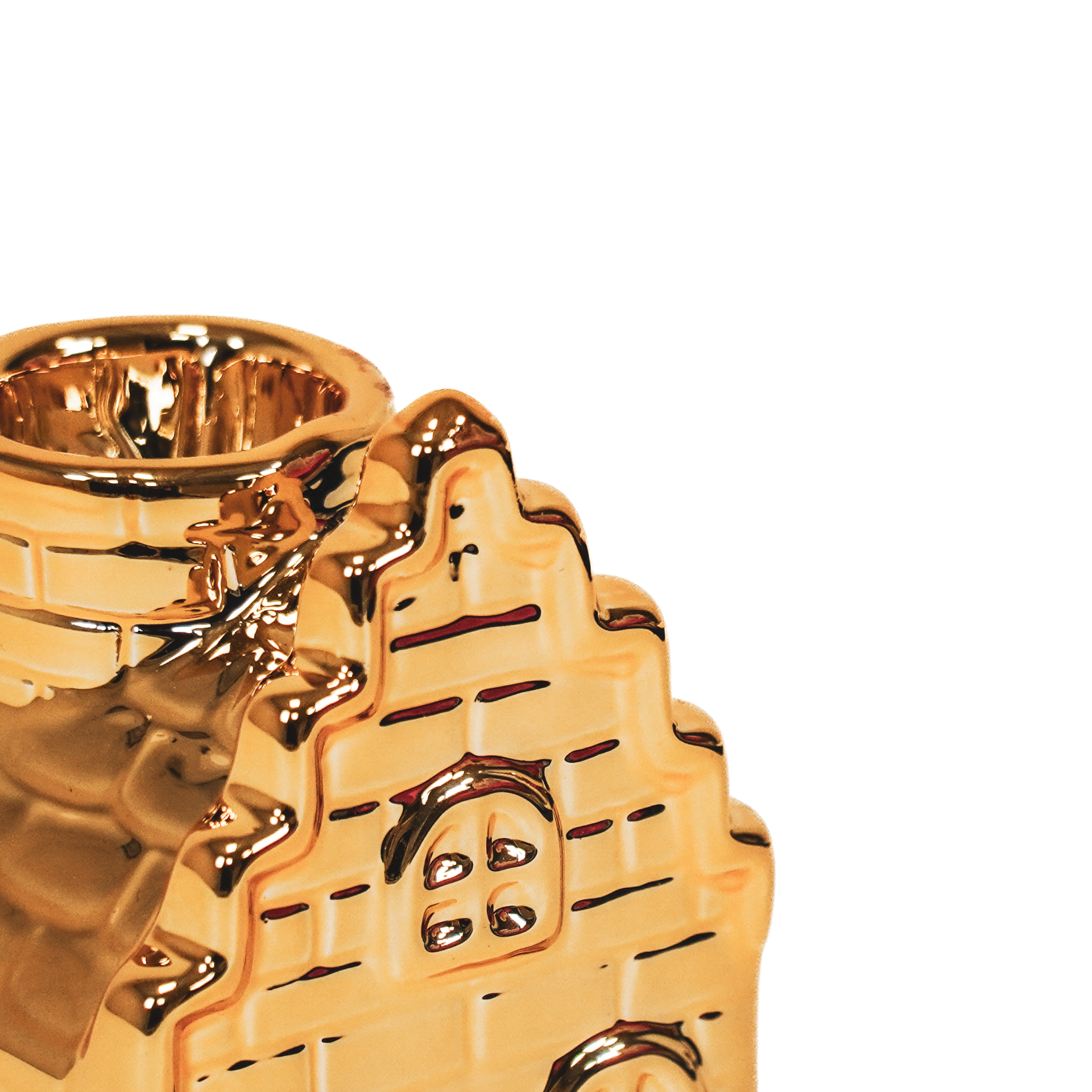 Bougeoir - Maison - Céramique - Doré - 6x6x11cm