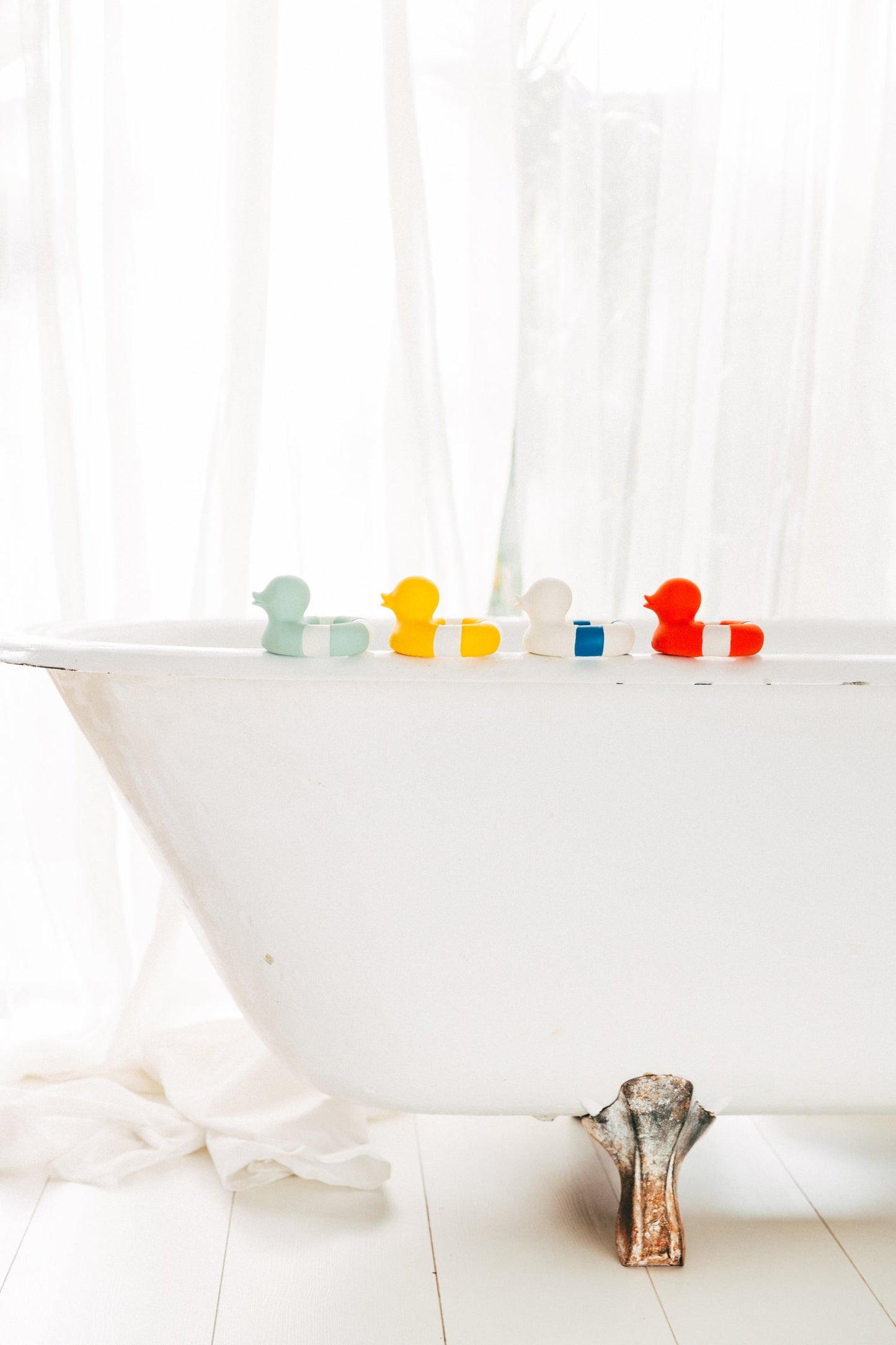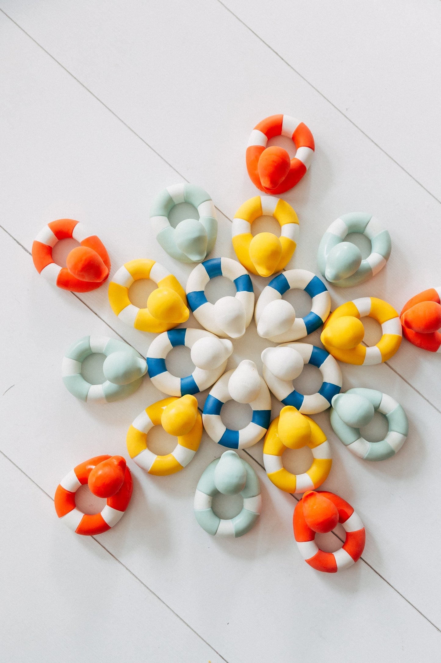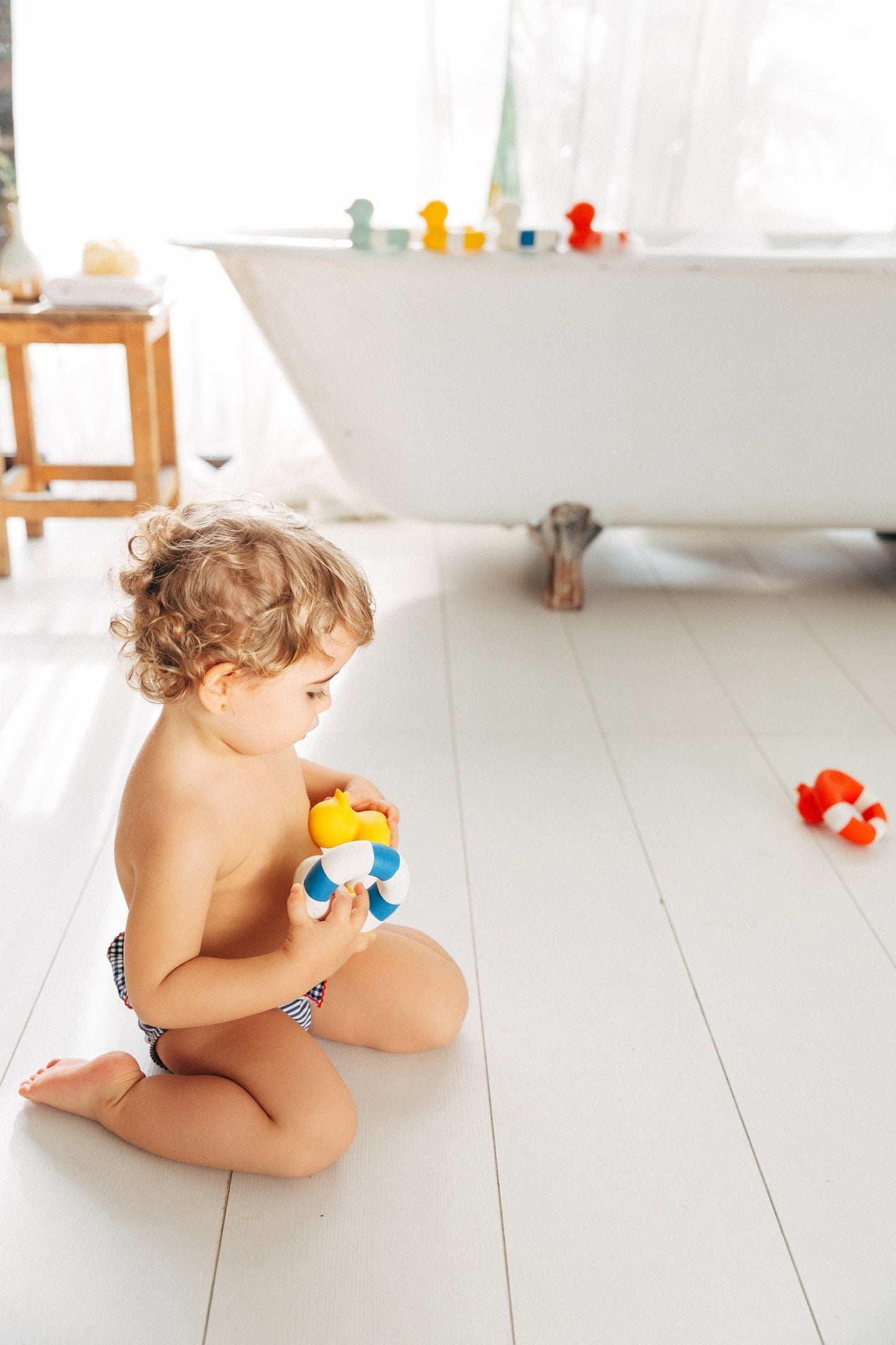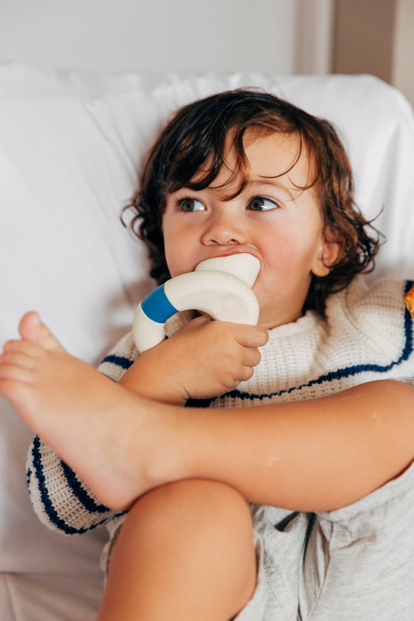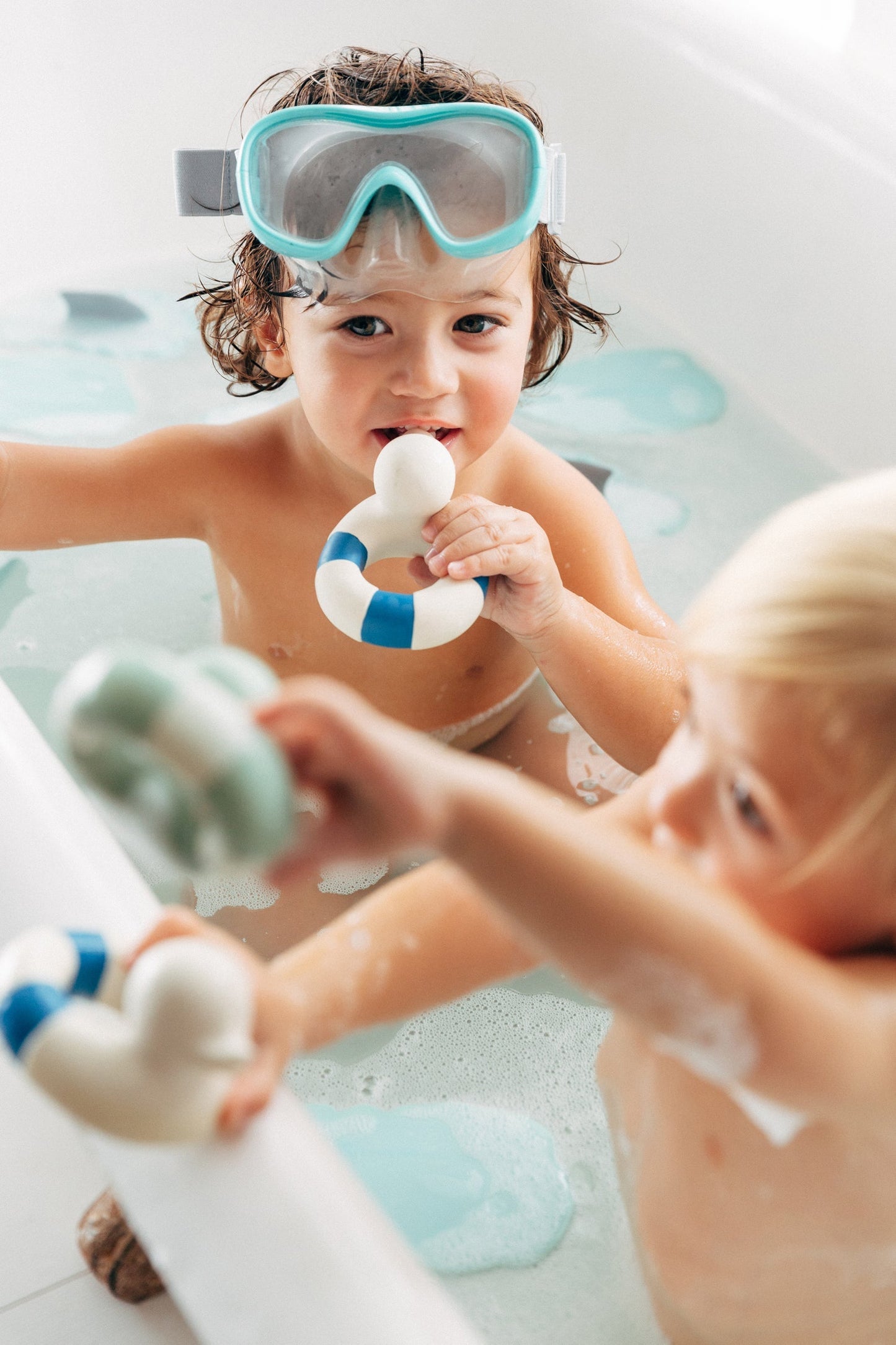 Inspirado na bóia clássica da linha de vida, Flo The Navy Blue é o novo pato moderno moderno em borracha natural de Oli & amp; Carol. Ele está pronto para acenar com as crianças na hora do banho! Também é perfeito como um brinquedo de dentes, como um brinquedo sensorial e como um objeto decorativo. É feito de um quarto individual sem orifícios, o que o torna 100% livre de bactérias.