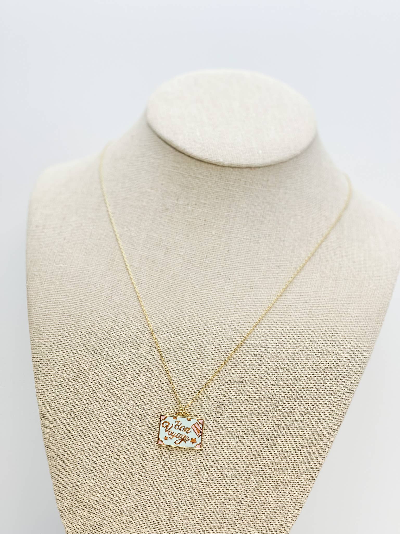 Découvrez le plaisir de voyager avec le collier tendance « Bon Voyage » de Prep Obsessed. Cette charmante pièce est ornée d'une breloque en émail extensible de 16 pouces et 3 pouces, imitant l'allure d'une valise vintage. Ce collier est un accessoire parfait pour les âmes en quête de voyages et les globe-trotters, incarnant l'esprit d'aventure et d'exploration. Il est fabriqué avec un matériau émaillé de haute qualité, garantissant durabilité et usure durable. Portez votre amour du voyage autour de votre cou avec cette pièce unique de Prep Obsessed.