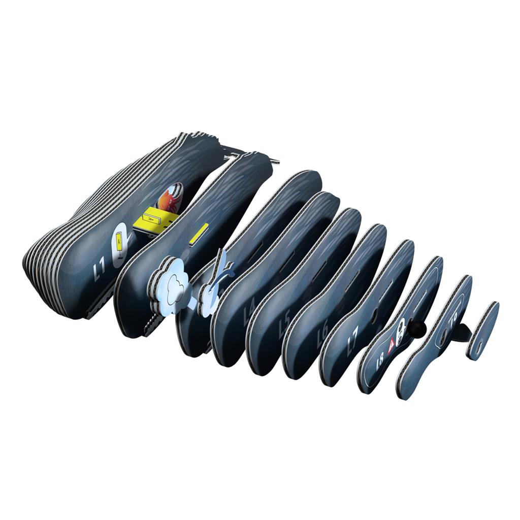 Nos produits sont conformes à 100% aux normes de sécurité internationales (EN71-1,2,3 et CPSIA). Un pack EUGY contient 7 cartes plates avec des pièces numérotées individuellement, toutes prêtes à être assemblées.