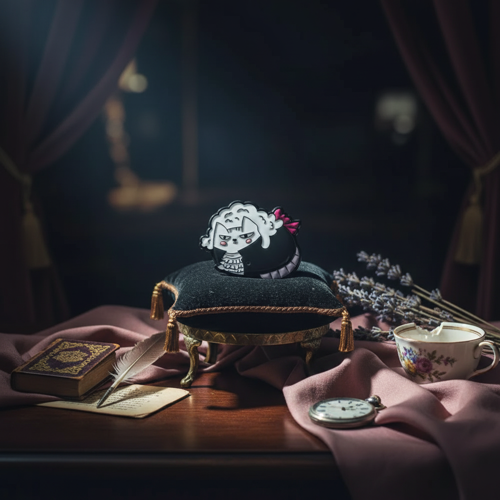 Ce pin’s original met en scène un chat au look de juge, perruque aristocratique sur la tête et expression autoritaire… mais adorable ! Parfait pour personnaliser vestes, sacs, casquettes, trousses ou tableaux de pin’s, il apportera une touche d’humour sophistiquée à votre style.