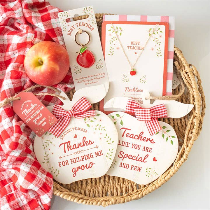 Célébrez votre enseignant préféré avec ce porte-clés en émail en forme de pomme, un souvenir pratique mais sincère qu'il peut porter au quotidien. Idéal comme cadeau de fin d'année ou comme petit geste de reconnaissance. Conçu par Something Different Wholesale et faisant partie de la collection Apple Picking de cadeaux et de décorations d'intérieur sur le thème des pommes de campagne.