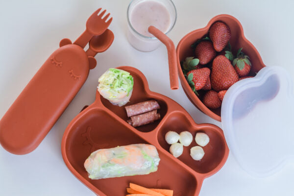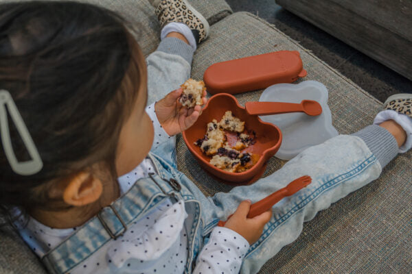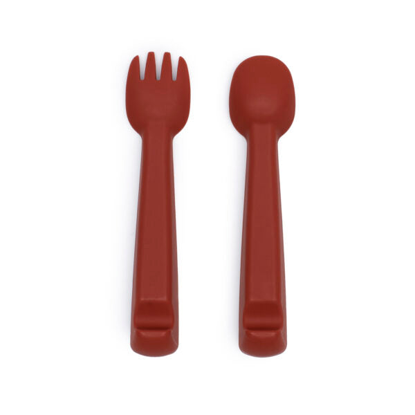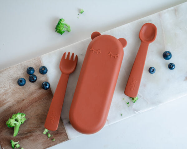 Este lindo conjunto de talheres encheu todas as características para as refeições do 1º bebê.