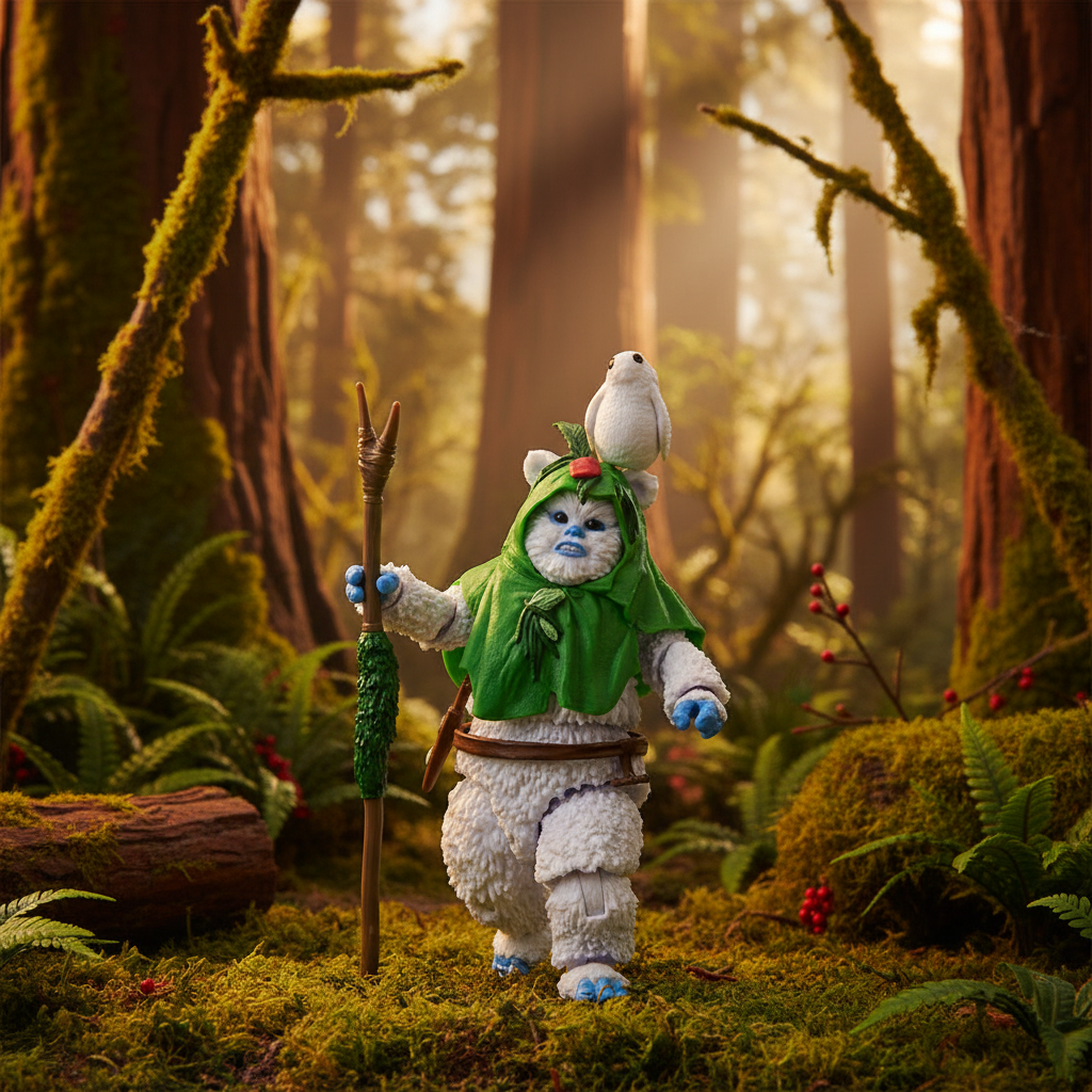 • Cette figurine Ewok (Holiday Edition) a une déco unique inspirée des fêtes qui inclut une cape aux couleurs festives